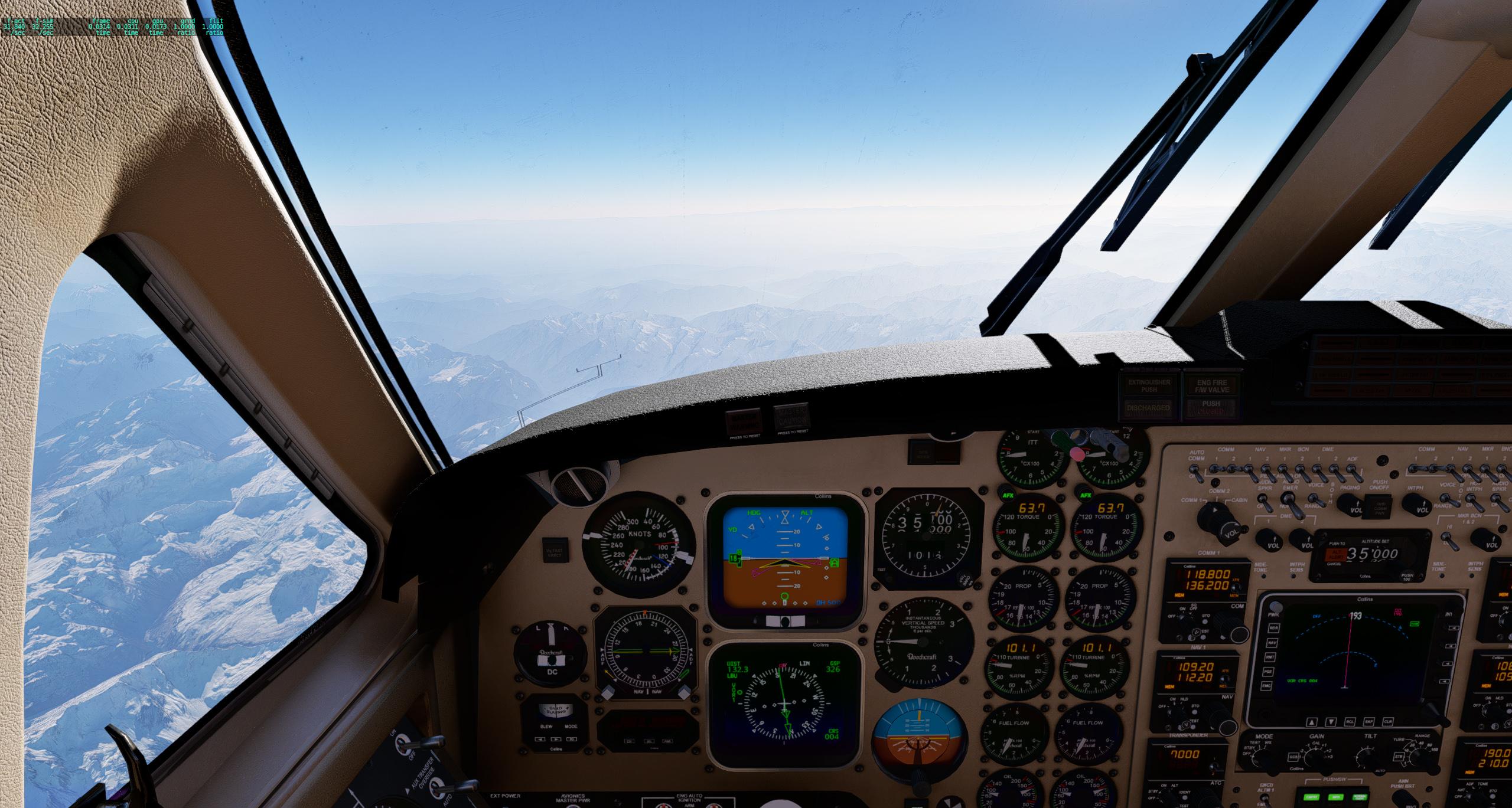 Als Nachteil sehe ich es an, dass die Szenerie aus Cockpitsicht mindestens eine Blende überbelichtet ist. Aber das wird "sicher" ebenfalls noch besser. Es scheint schwer umzusetzen zu sein, dass die Landschaft von außerhalb und von innerhalb des Fliegers gleich aussieht, und das Cockpit für sich nicht zu dunkel ist. 🙄