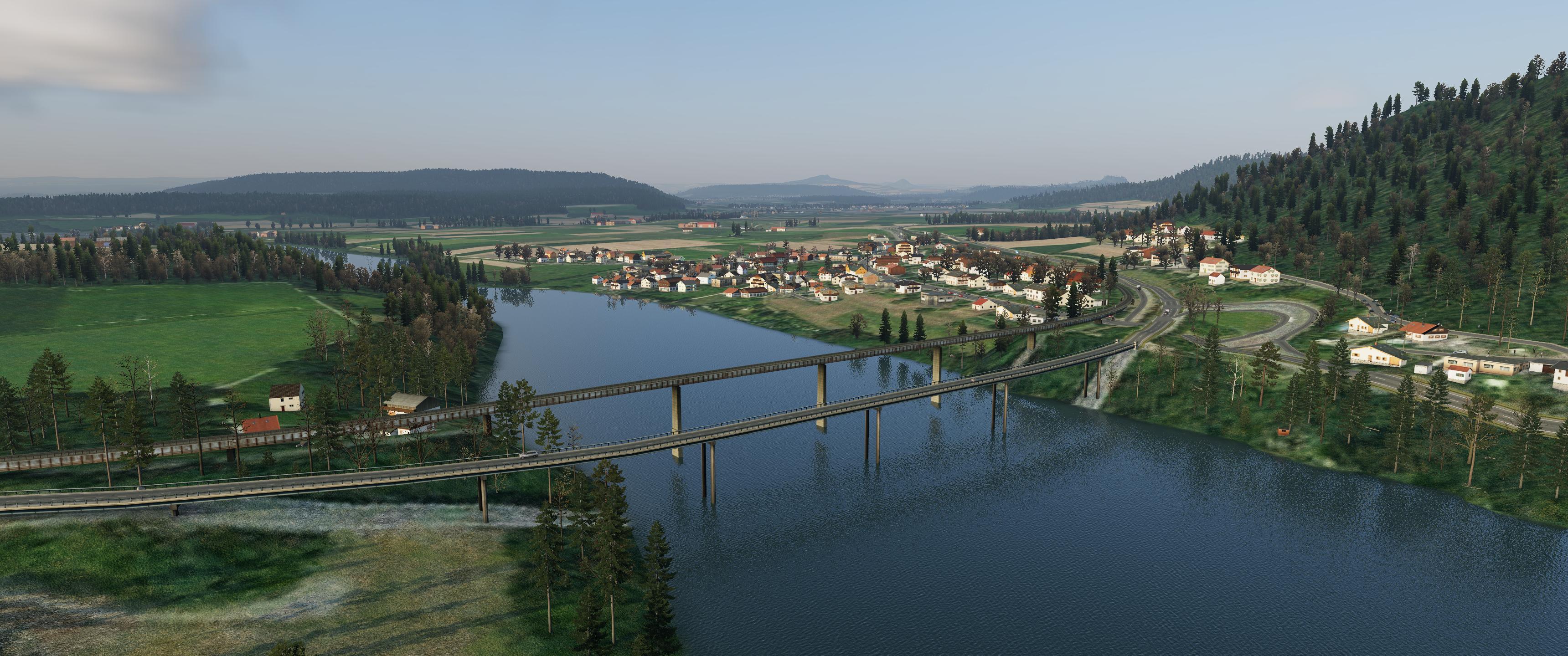 jedenfalls das als Kontrast: es fehlen die GK-VFR-Brücken (samt Foto-Schatten), dafür aber mit winterlich aktuell besser passenden "Laub"-freien Laubbäumen, Und dann mal der Blick von oben: Alles in ZL16, ohne GO2, dafür in @EUR. Gerade Uferlinien sind dann natürlich ein Thema, aber die lassen sich in OSM feiner gestalten ... und stehen dann sofort für eine neu Ortho4XP-Kachel zur Verfügung. Leider gibt es nicht "die eine" Lösung. Euch allen ein frohes Weihnachtsfest!