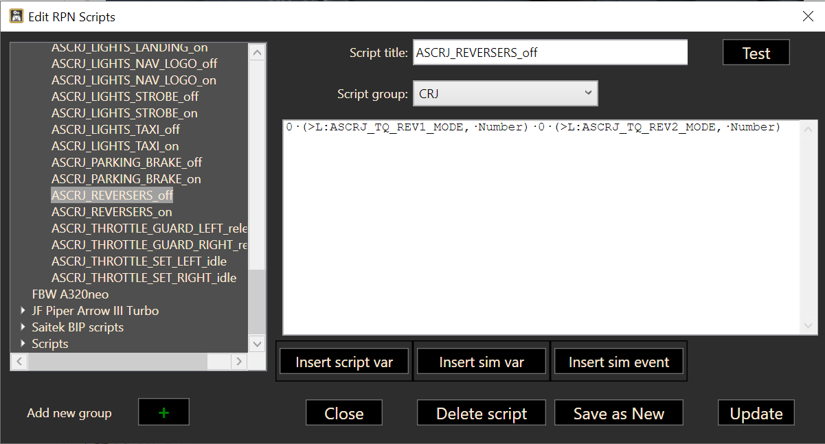 3. Does anyone know the LVAR name for the Thrust Reverser switches, next to the pilot’s knee? I spent an hour looking for them yesterday and couldn’t get them to work.