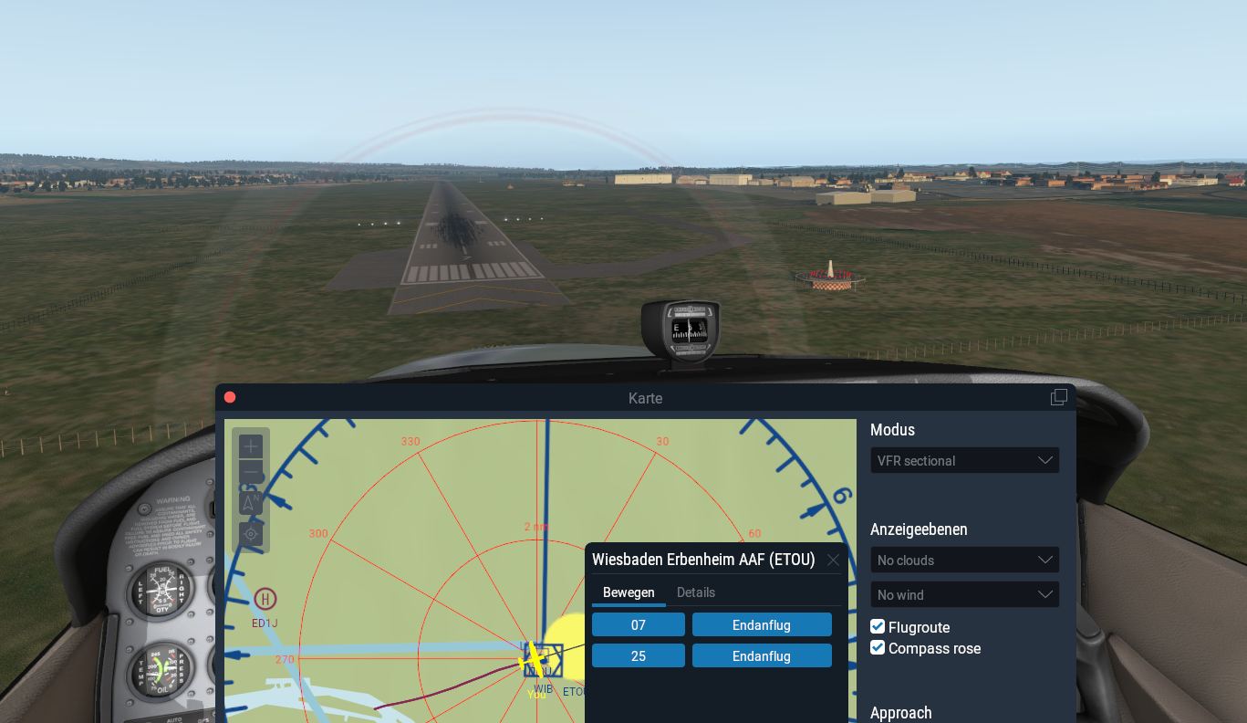 Gestern in einem XP10 youtube-Tutorial gehört, dass es in XP keine Funkfeuer zu sehen gibt. Hab´bei XP10 noch nie darauf geachtet, aber bei XP11 gibts die, in Wiesbaden direkt drauf zugeflogen. Ein weiteres gesucht, in Kempten ebenfalls auffindbar, also nehme ich an, dass alle VOR´s vorhanden sind. Sehen sehr hübsch aus.