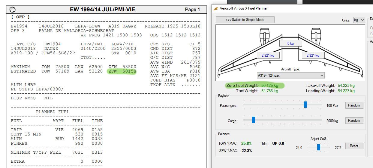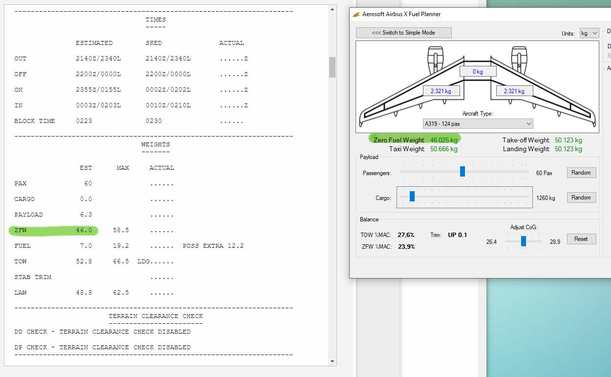 Alternatively you could change the pax weight in the Airbus to 104 kg and leave the cagro empty, but that won't work with the fuel planner....