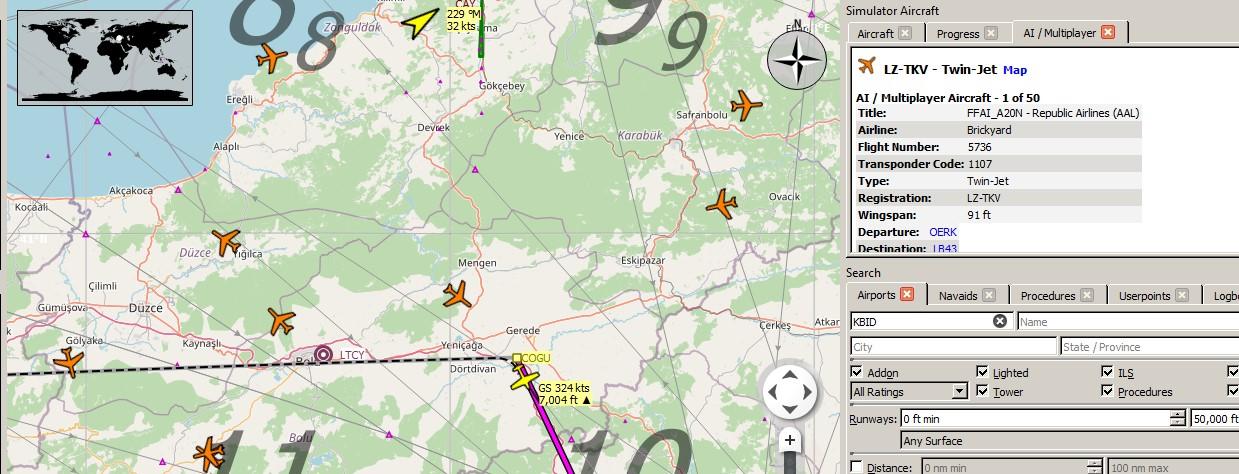 • In AI Offline mode, default MSFS offline traffic (both airliner and GA) is still present alongside ST offline traffic. The default MSFS offline traffic is not airline-specific, so MSFS will select a livery at random. You can tell whether an offline AI aircraft's flight plan is ST or default by looking at its Registration in LittleNavMap: ST flight registrations are always prefixed with the 3-digit airline code (e.g. RPA for a Republic Airways flight), whereas default registrations won't be (e.g. LZ-TKV). There is a way to disable the default offline traffic completely with a manual hack, but in that case you'd lose both default airliner and default GA traffic (since both types of traffic are generated by the same default file).