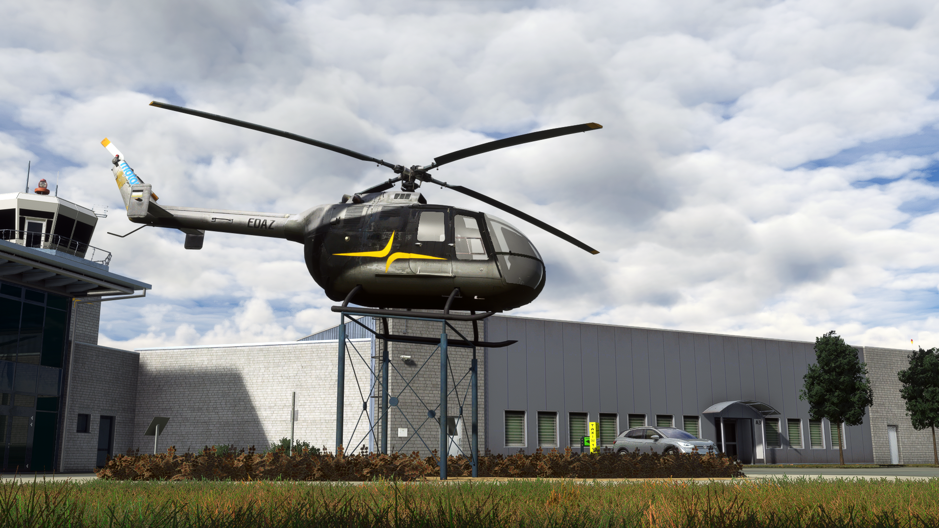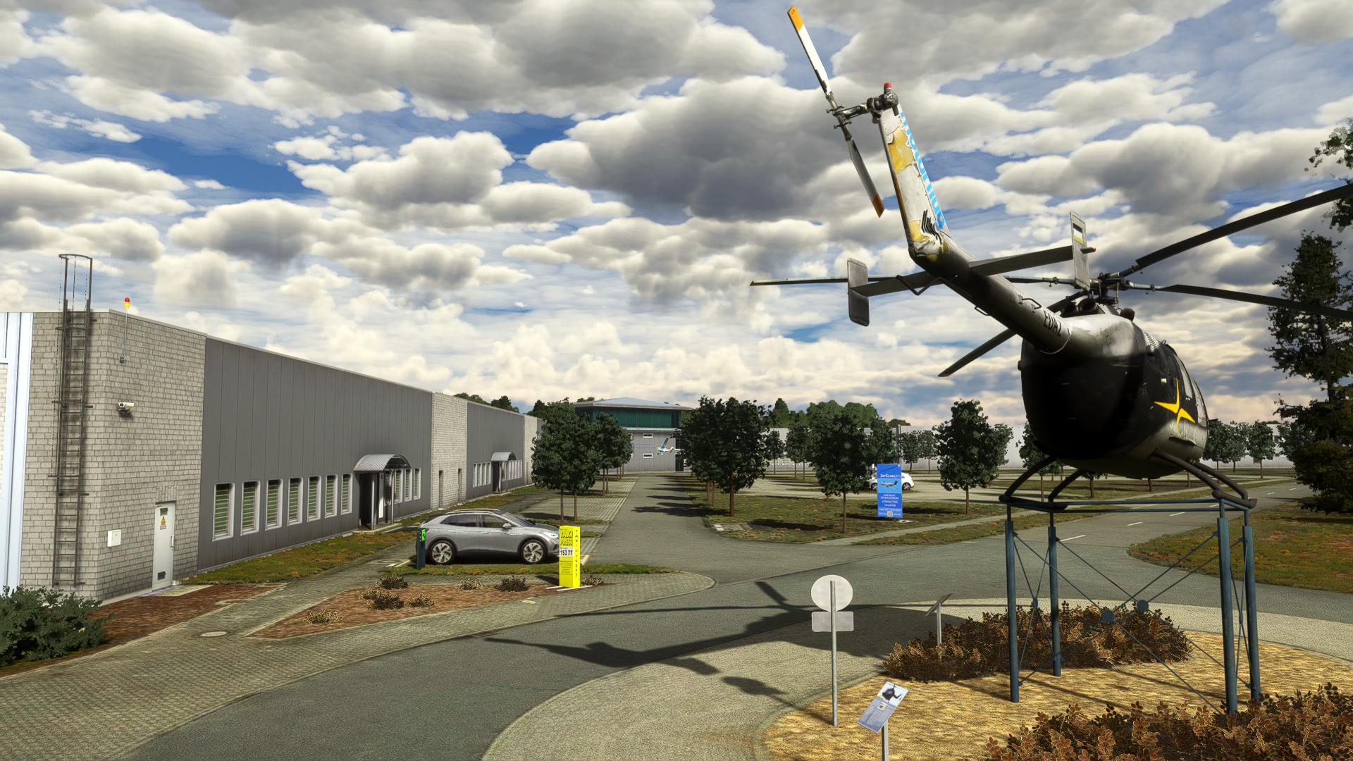 You´ll see the BO-105 landmark in original color scheme with interior and information signs which placed around the aera.