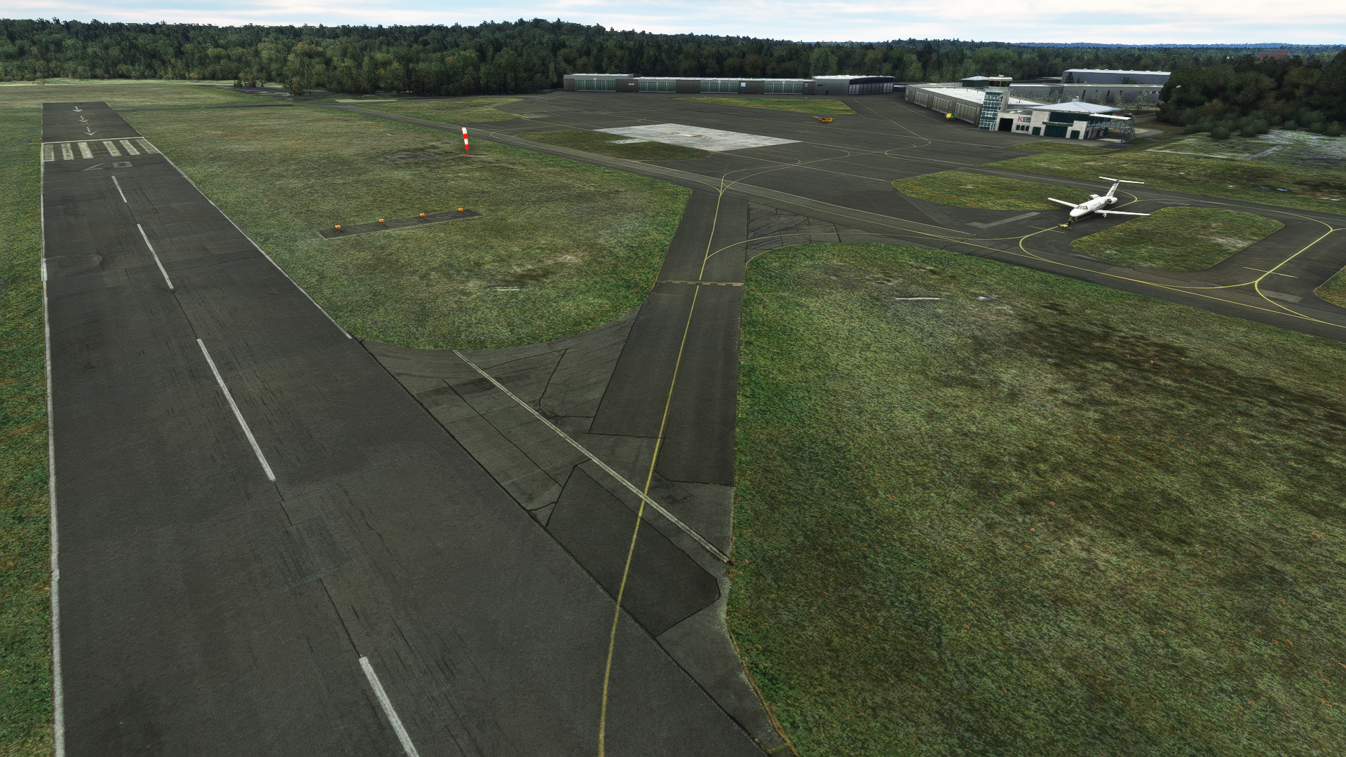 The drone did a good job for peaceful purposes. You will see aerial photographs which combined with an orthophoto provided by the airport operator. For this scenery there is no BingMaps or Google Maps data in use.
