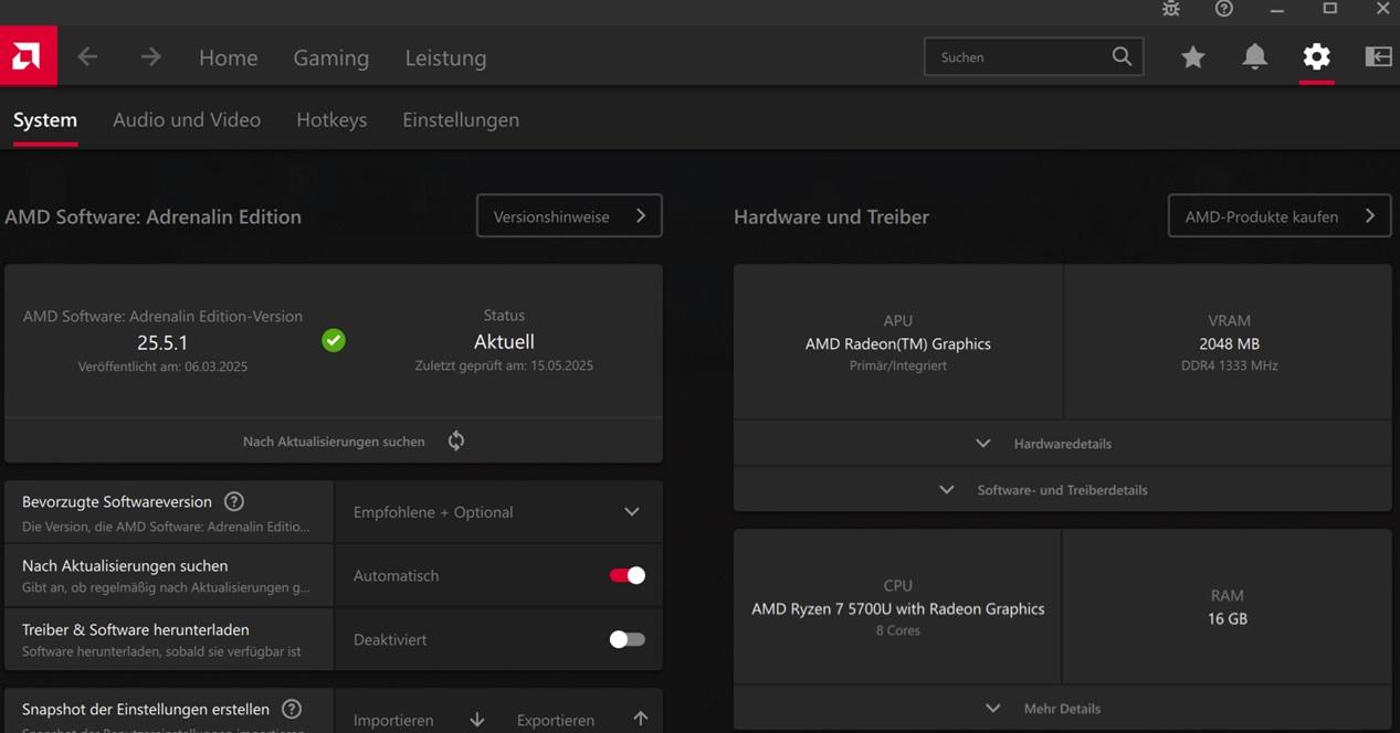 Ja, genau. Die Treiber- Update-Meldung verlangte die Installation von AMD Adrenalin 22.2.1. Das habe ich auch gemacht. Beim Starten der Demo war X-Plane 12 aber mit diesem update immer noch nicht zufrieden. Ein upgrade auf AMD Adrenalin 25.5.1 wurde verlangt. Ausserdem eine Maßnahme, die Windows verbietet in eine alte Version zurückzufallen. Habe ich alles gemacht. Danach lief ja auch die Demo.