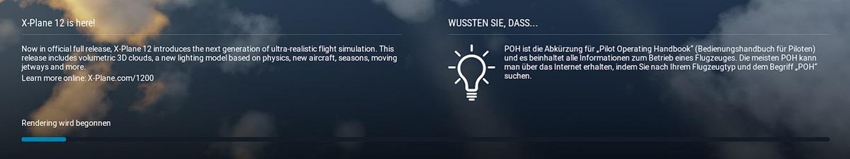 Was beim 'Rendern' passiert ist völlig unerheblich (damit ist prinzipiell das Erzeugen des sichtbaren 3D-Bildes gemeint, abseits der 2D-Benutzeroberfläche), der Ladebalken ist da nicht sonderlich detailliert, im Wesentlichen hängt sich dein X-Plane schon beim Laden auf - und ich tippe da ganz stark darauf, dass deine GPU (der Graphik-Chip der in deinem Fall in der CPU verbaut ist) einfach nicht wirklich für geeignet ist (integrierte Grafiklösungen taugen für anspruchsvolle 3D-Anwendung meist mal so gar) ніч).