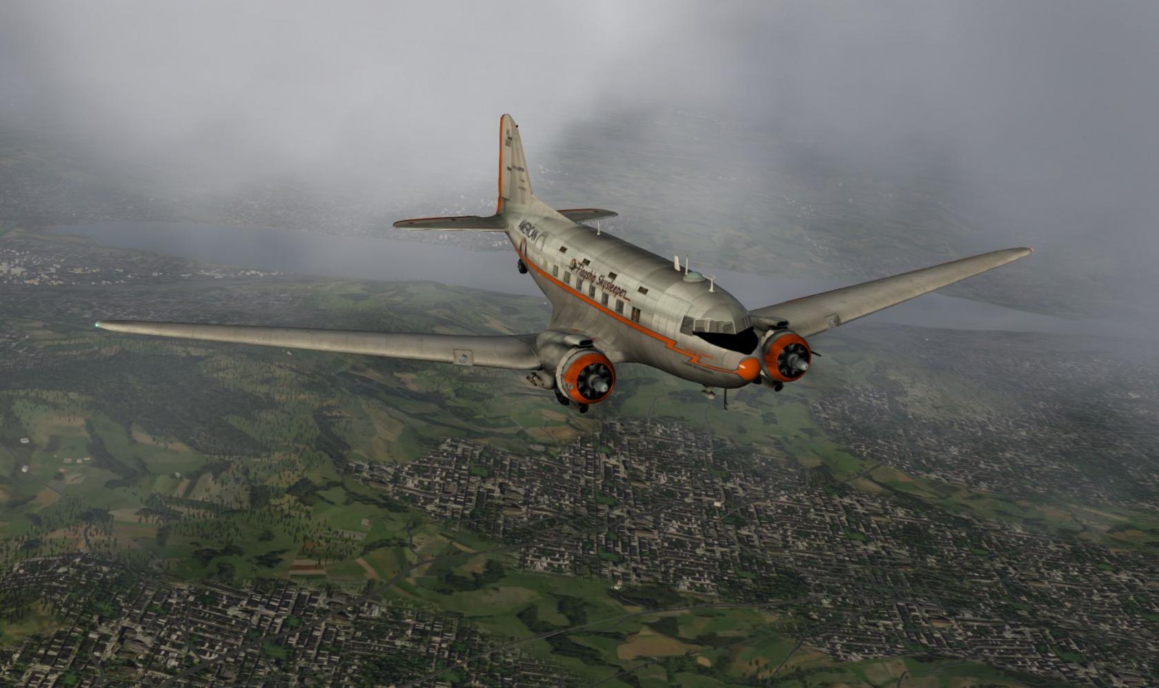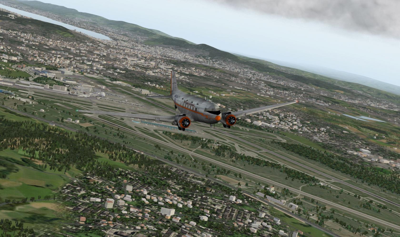 Nun, das Flugzeug (LES DC-3) ist natürlich Payware, die Bemalung Freeware (X-Pilot), die Airports Touluse und Zürich von Aerosoft, eine der Standard OSM Maps von Europa und schließlich noch das kleine Gimick "Urban Max Extreme V2" etwas über 6 Euro. Außerdem noch Static Planes für Toulouse und Zürich von X-Pilot. Alles andere ist Standard X-Plane 10 in der momentanen Beta.
